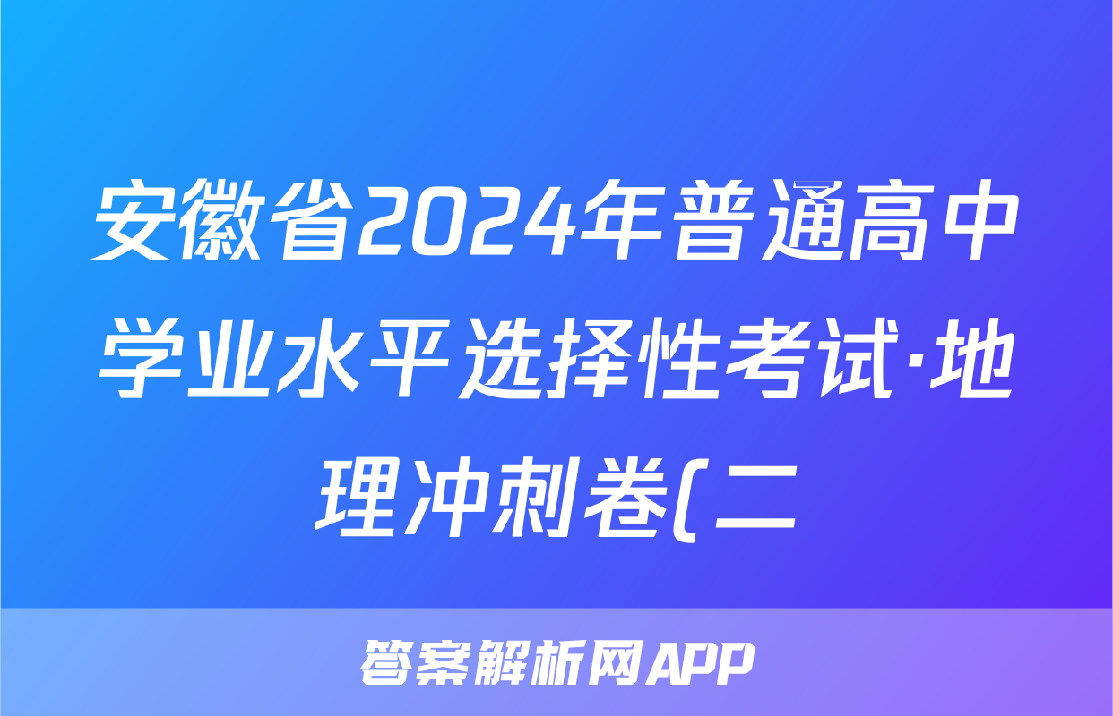 安徽省2024年普通高中学业水平选择性考试·地理冲刺卷(二)2[24·(新高考)CCJ·地理·AH]答案正在持续更新,目前2024届最新高考模拟示范卷答案网为大家整理了相关试题及答案,供大家查缺补漏,高效提升成绩。