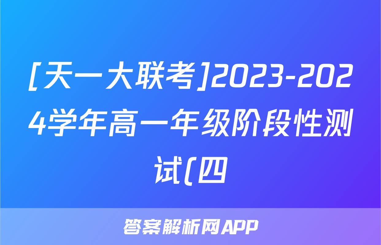 [天一大联考]2023-2024学年高一年级阶段性测试(四)4答案(物理)正在持续更新,目前2024届最新高考模拟示范卷答案网为大家整理了相关试题及答案,供大家查缺补漏,高效提升成绩。