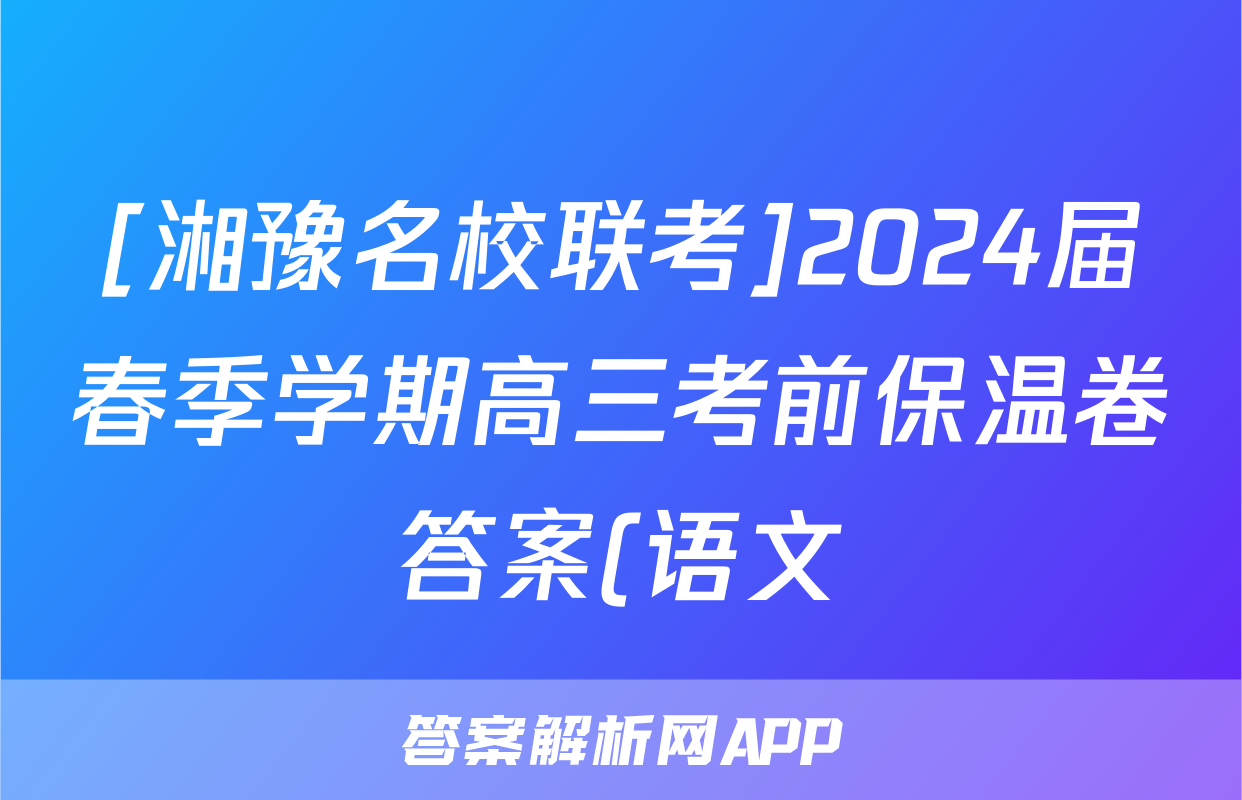 [湘豫名校联考]2024届春季学期高三考前保温卷答案(语文)正在持续更新,目前2024届最新高考模拟示范卷答案网为大家整理了相关试题及答案,供大家查缺补漏,高效提升成绩。