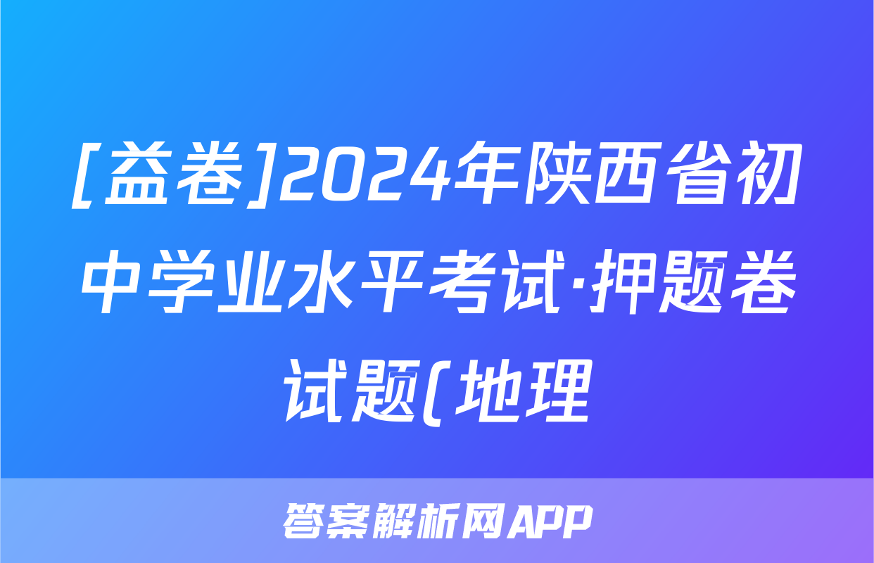 [益卷]2024年陕西省初中学业水平考试·押题卷试题(地理)正在持续更新,目前2024届最新高考模拟示范卷答案网为大家整理了相关试题及答案,供大家查缺补漏,高效提升成绩。