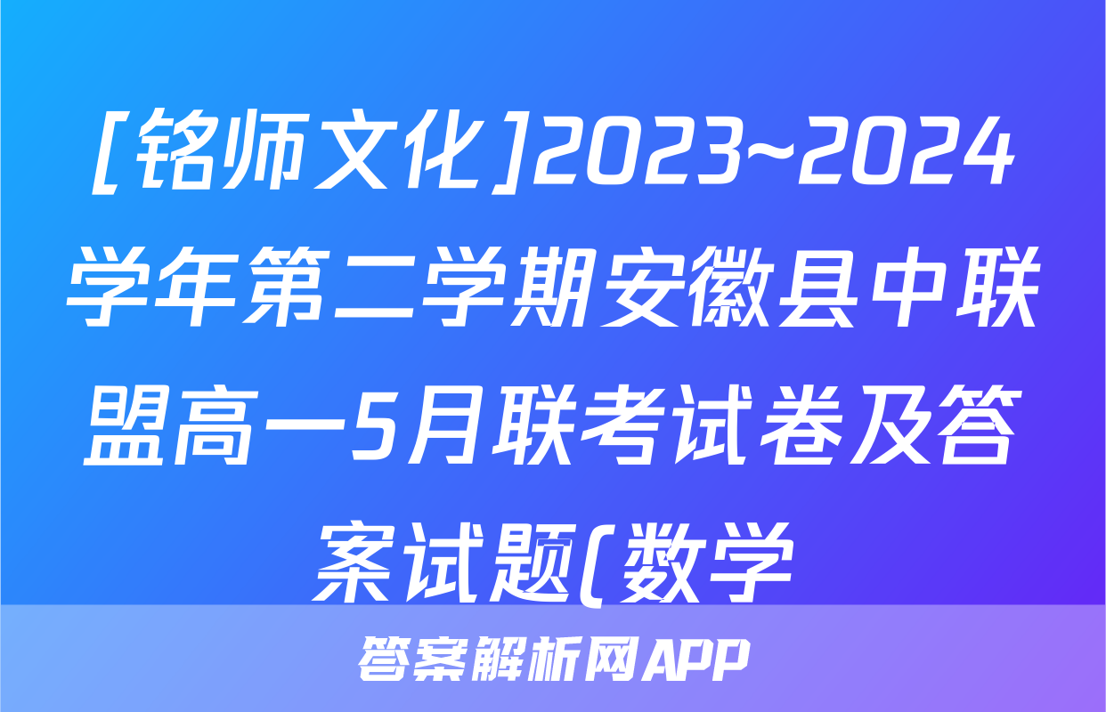 [铭师文化]2023~2024学年第二学期安徽县中联盟高一5月联考试卷及答案试题(数学)正在持续更新,目前2024届最新高考模拟示范卷答案网为大家整理了相关试题及答案,供大家查缺补漏,高效提升成绩。