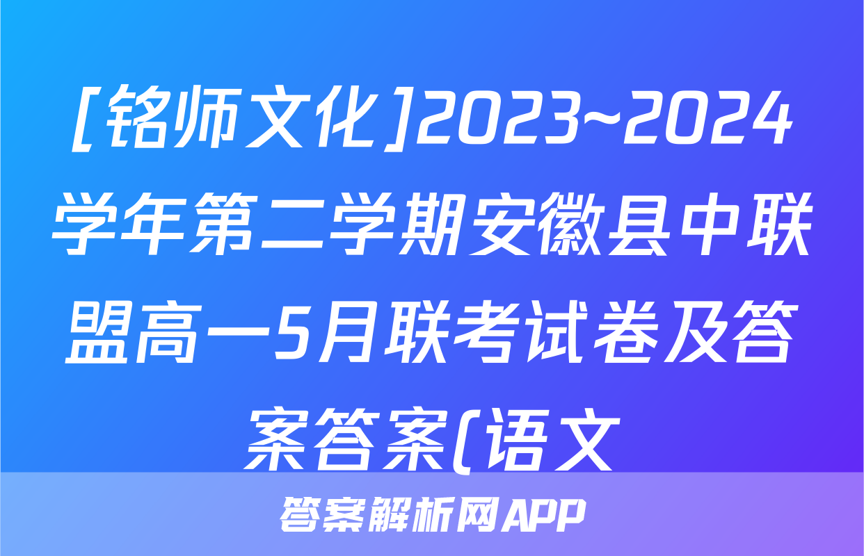 [铭师文化]2023~2024学年第二学期安徽县中联盟高一5月联考试卷及答案答案(语文)正在持续更新,目前2024届最新高考模拟示范卷答案网为大家整理了相关试题及答案,供大家查缺补漏,高效提升成绩。