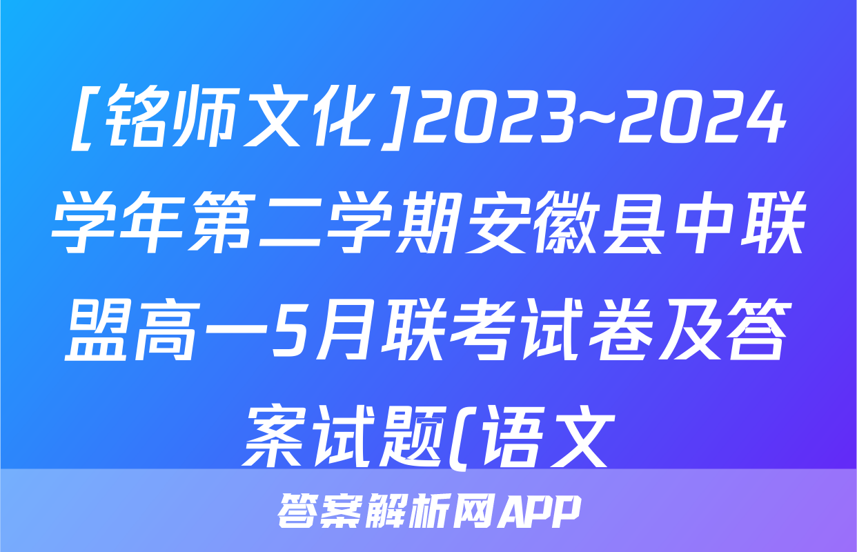 [铭师文化]2023~2024学年第二学期安徽县中联盟高一5月联考试卷及答案试题(语文)正在持续更新,目前2024届最新高考模拟示范卷答案网为大家整理了相关试题及答案,供大家查缺补漏,高效提升成绩。