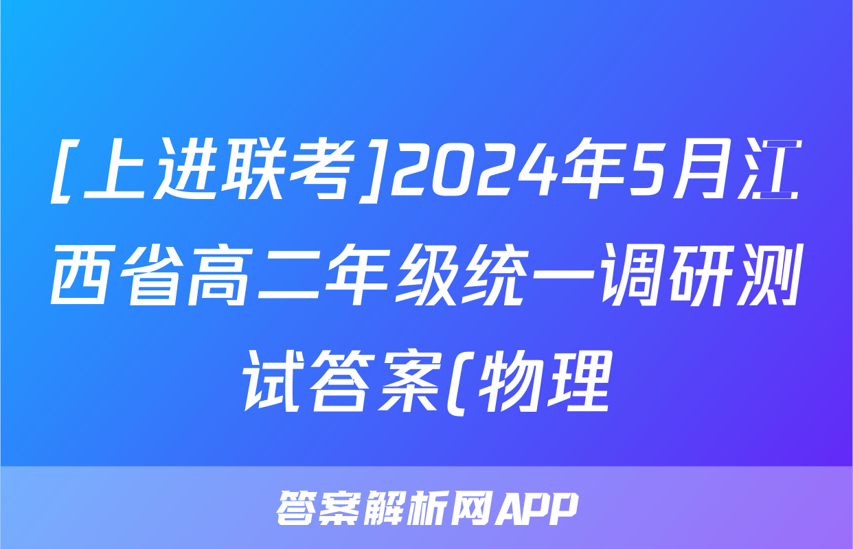 [上进联考]2024年5月江西省高二年级统一调研测试答案(物理)正在持续更新,目前2024届最新高考模拟示范卷答案网为大家整理了相关试题及答案,供大家查缺补漏,高效提升成绩。
