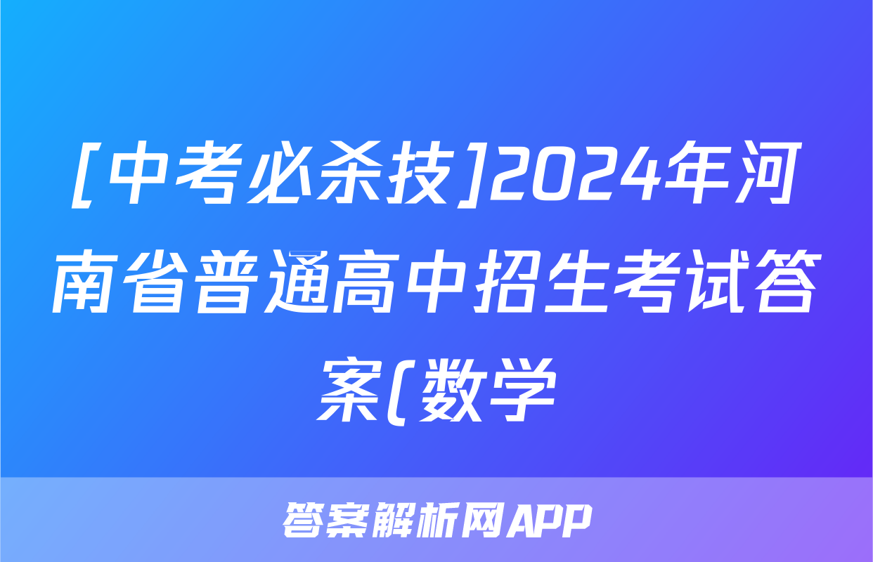 [中考必杀技]2024年河南省普通高中招生考试答案(数学)