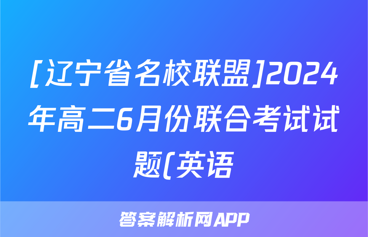 [辽宁省名校联盟]2024年高二6月份联合考试试题(英语)