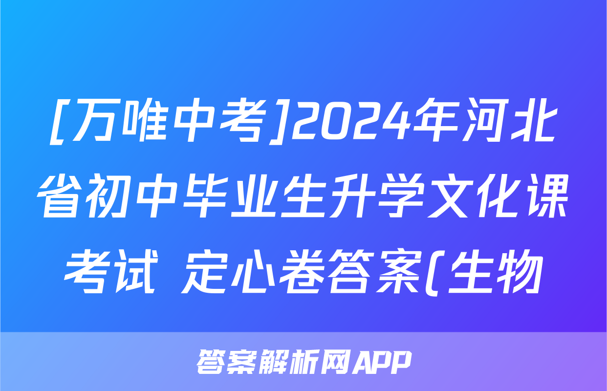 [万唯中考]2024年河北省初中毕业生升学文化课考试 定心卷答案(生物)正在持续更新,目前2024届最新高考模拟示范卷答案网为大家整理了相关试题及答案,供大家查缺补漏,高效提升成绩。