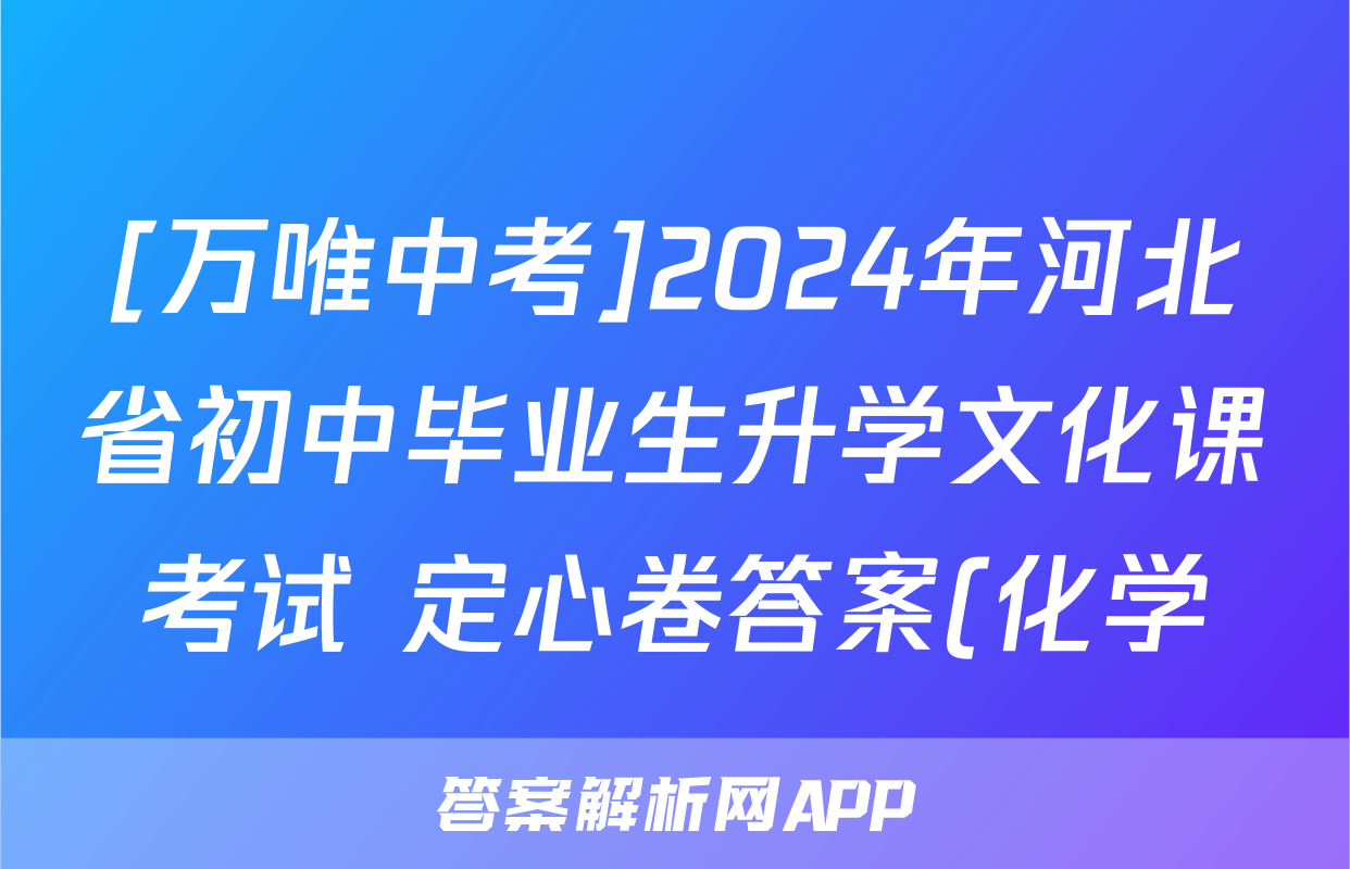 [万唯中考]2024年河北省初中毕业生升学文化课考试 定心卷答案(化学)正在持续更新,目前2024届最新高考模拟示范卷答案网为大家整理了相关试题及答案,供大家查缺补漏,高效提升成绩。