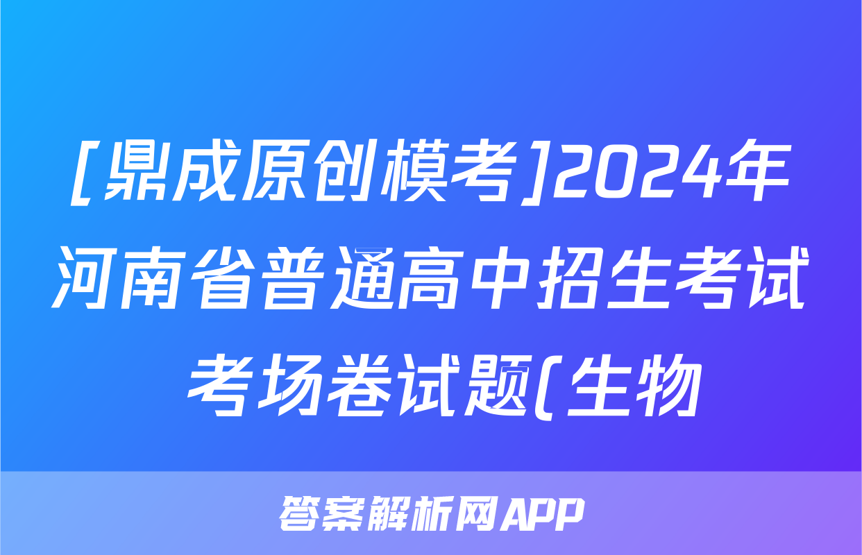 [鼎成原创模考]2024年河南省普通高中招生考试 考场卷试题(生物)正在持续更新,目前2024届最新高考模拟示范卷答案网为大家整理了相关试题及答案,供大家查缺补漏,高效提升成绩。