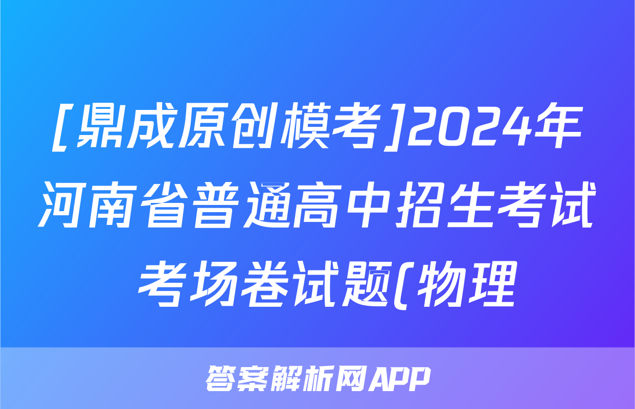 [鼎成原创模考]2024年河南省普通高中招生考试 考场卷试题(物理)正在持续更新,目前2024届最新高考模拟示范卷答案网为大家整理了相关试题及答案,供大家查缺补漏,高效提升成绩。