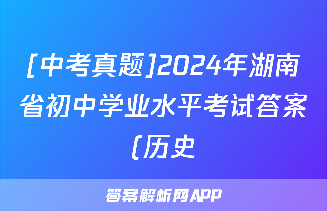 [中考真题]2024年湖南省初中学业水平考试答案(历史)正在持续更新,目前2024届最新高考模拟示范卷答案网为大家整理了相关试题及答案,供大家查缺补漏,高效提升成绩。