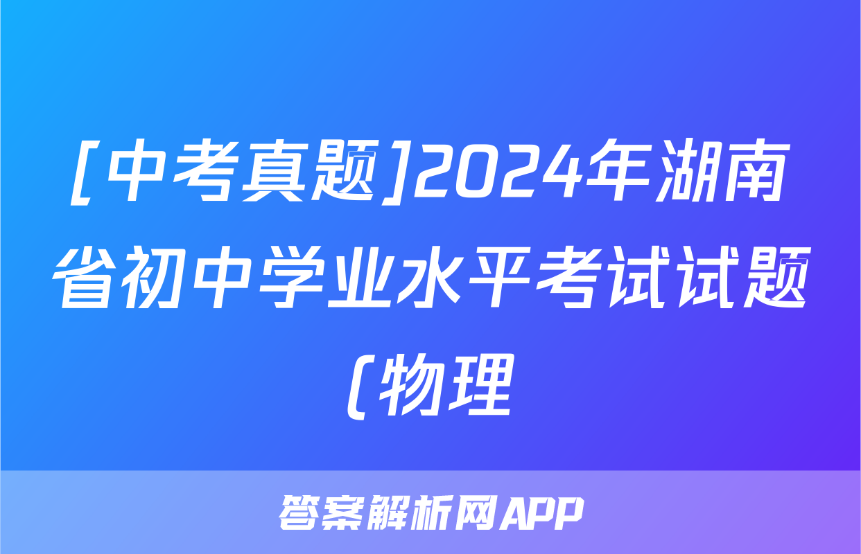 [中考真题]2024年湖南省初中学业水平考试试题(物理)