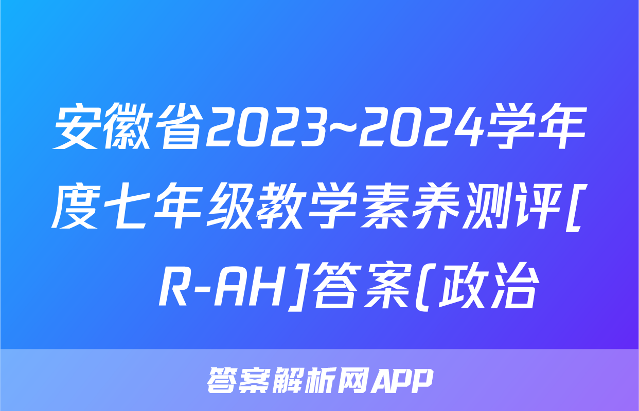 安徽省2023~2024学年度七年级教学素养测评[☐R-AH]答案(政治)正在持续更新,目前2024届最新高考模拟示范卷答案网为大家整理了相关试题及答案,供大家查缺补漏,高效提升成绩。