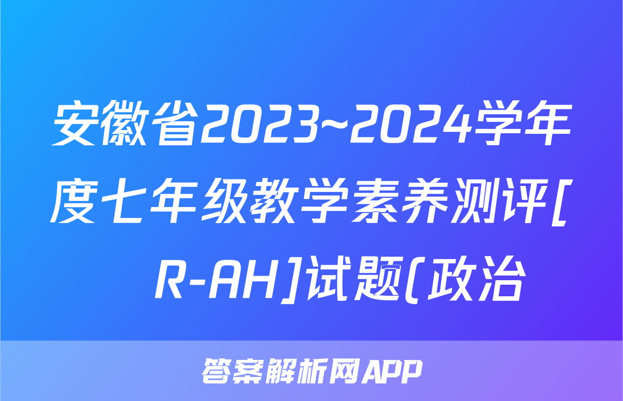 安徽省2023~2024学年度七年级教学素养测评[☐R-AH]试题(政治)正在持续更新,目前2024届最新高考模拟示范卷答案网为大家整理了相关试题及答案,供大家查缺补漏,高效提升成绩。
