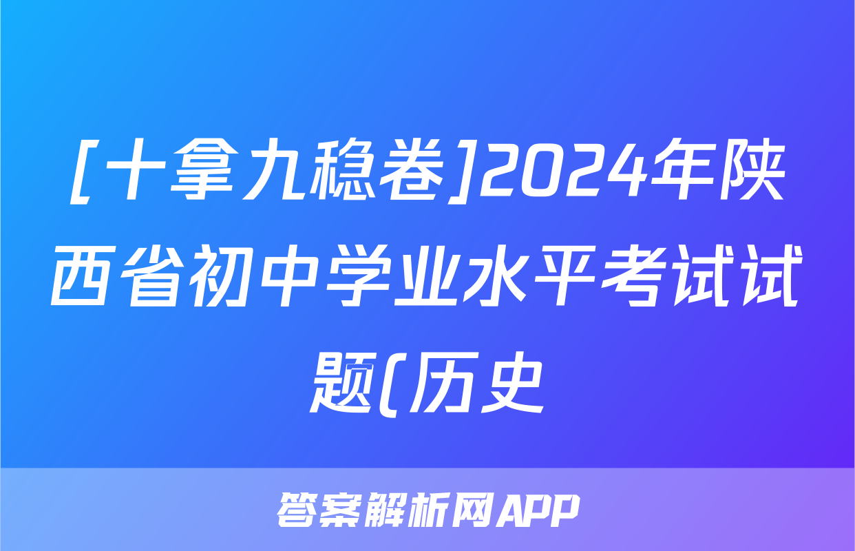 [十拿九稳卷]2024年陕西省初中学业水平考试试题(历史)正在持续更新,目前2024届最新高考模拟示范卷答案网为大家整理了相关试题及答案,供大家查缺补漏,高效提升成绩。