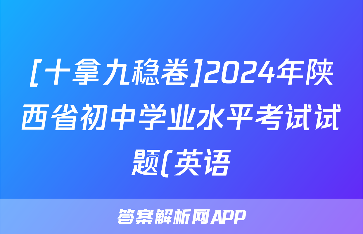 [十拿九稳卷]2024年陕西省初中学业水平考试试题(英语)正在持续更新,目前2024届最新高考模拟示范卷答案网为大家整理了相关试题及答案,供大家查缺补漏,高效提升成绩。