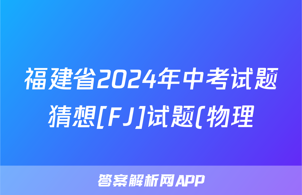 福建省2024年中考试题猜想[FJ]试题(物理)正在持续更新,目前2024届最新高考模拟示范卷答案网为大家整理了相关试题及答案,供大家查缺补漏,高效提升成绩。