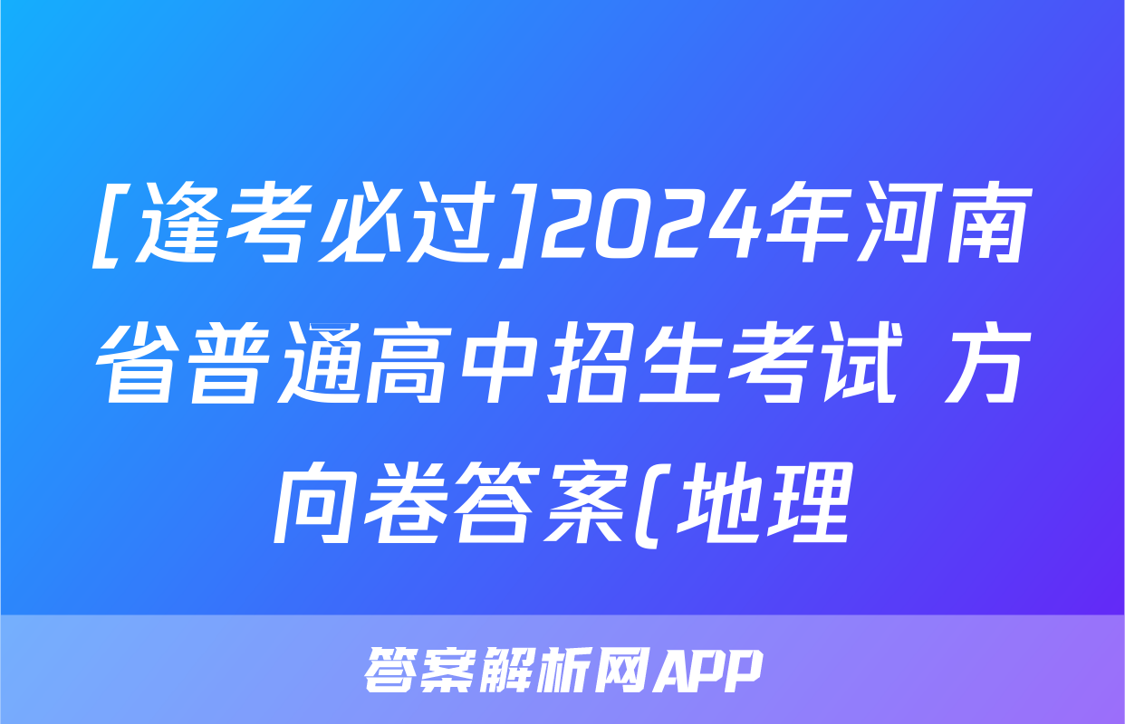 [逢考必过]2024年河南省普通高中招生考试 方向卷答案(地理)正在持续更新,目前2024届最新高考模拟示范卷答案网为大家整理了相关试题及答案,供大家查缺补漏,高效提升成绩。