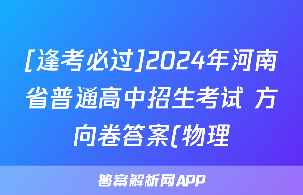 [逢考必过]2024年河南省普通高中招生考试 方向卷答案(物理)
