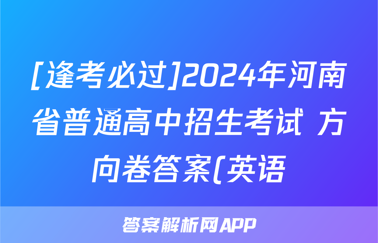 [逢考必过]2024年河南省普通高中招生考试 方向卷答案(英语)正在持续更新,目前2024届最新高考模拟示范卷答案网为大家整理了相关试题及答案,供大家查缺补漏,高效提升成绩。
