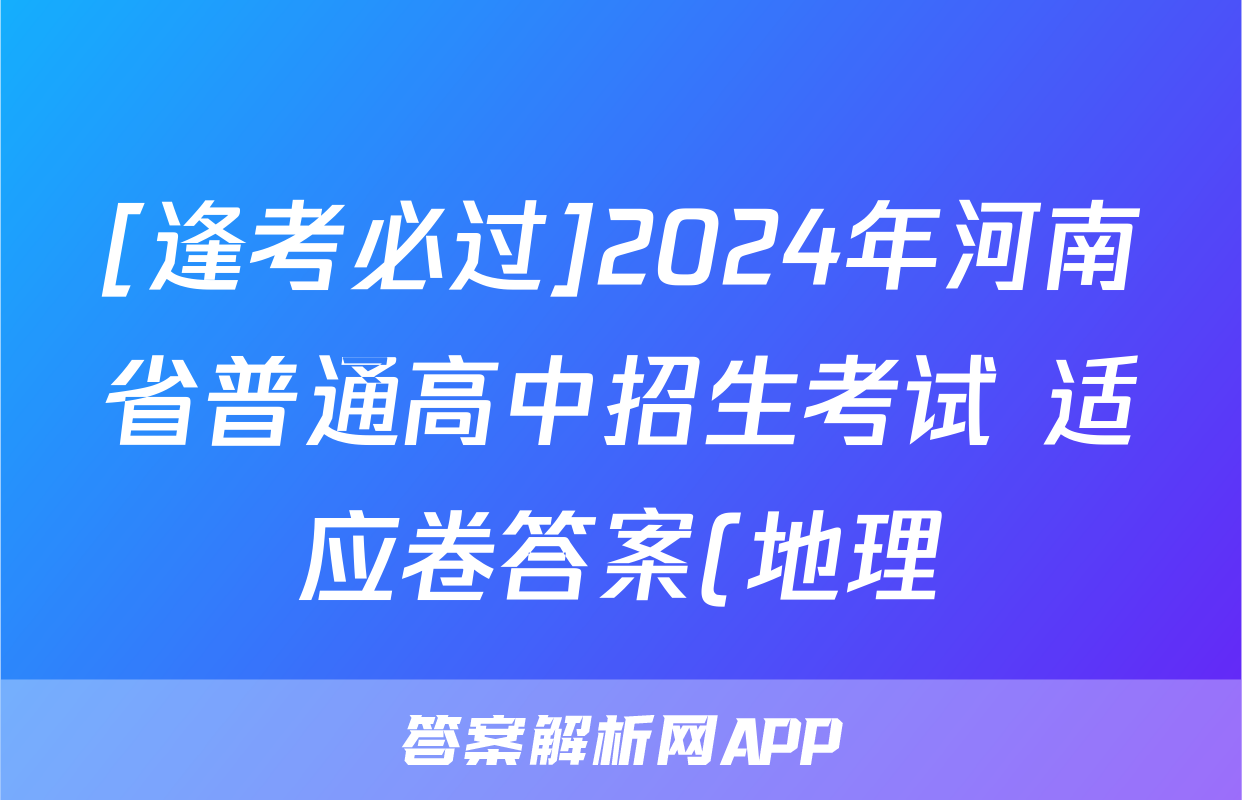 [逢考必过]2024年河南省普通高中招生考试 适应卷答案(地理)正在持续更新,目前2024届最新高考模拟示范卷答案网为大家整理了相关试题及答案,供大家查缺补漏,高效提升成绩。