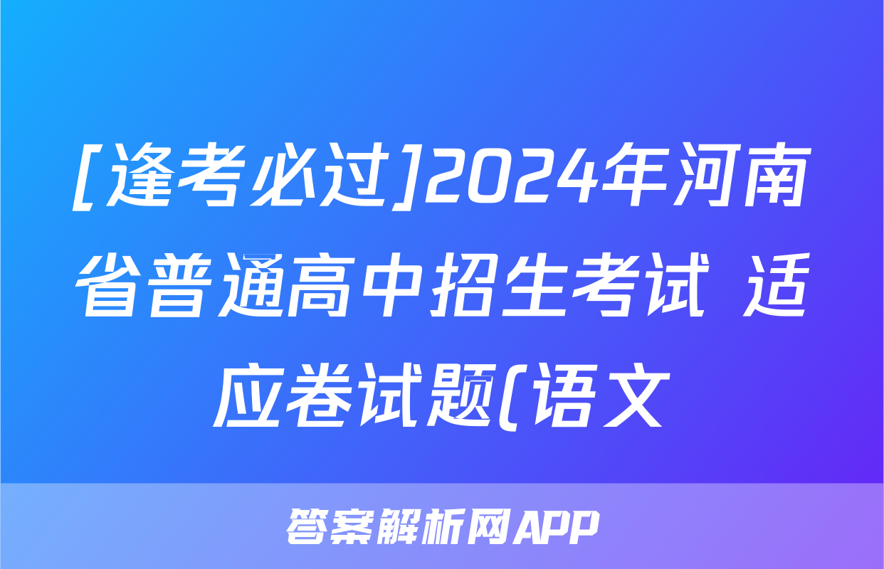 [逢考必过]2024年河南省普通高中招生考试 适应卷试题(语文)正在持续更新,目前2024届最新高考模拟示范卷答案网为大家整理了相关试题及答案,供大家查缺补漏,高效提升成绩。