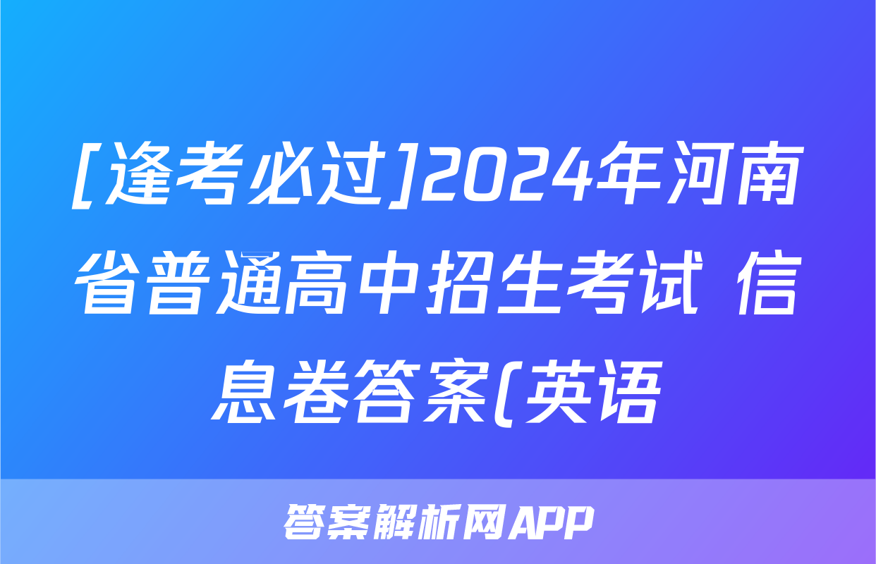 [逢考必过]2024年河南省普通高中招生考试 信息卷答案(英语)