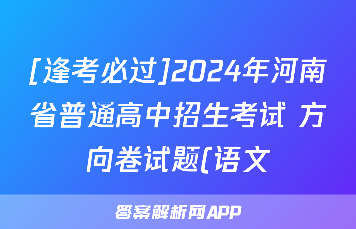 [逢考必过]2024年河南省普通高中招生考试 方向卷试题(语文)