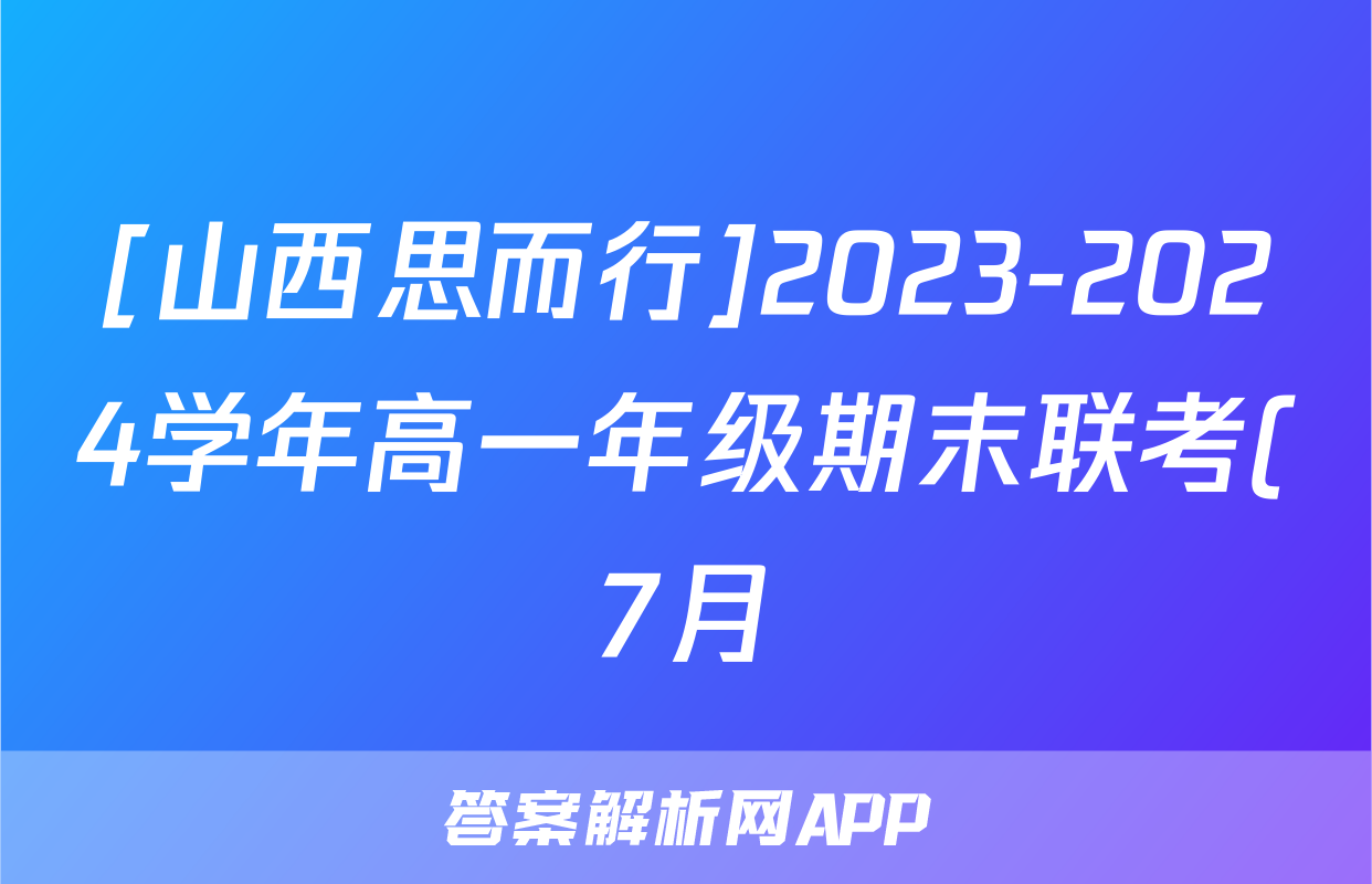 [山西思而行]2023-2024学年高一年级期末联考(7月)地理(湘教版)试题正在持续更新,目前2024届最新高考模拟示范卷答案网为大家整理了相关试题及答案,供大家查缺补漏,高效提升成绩。