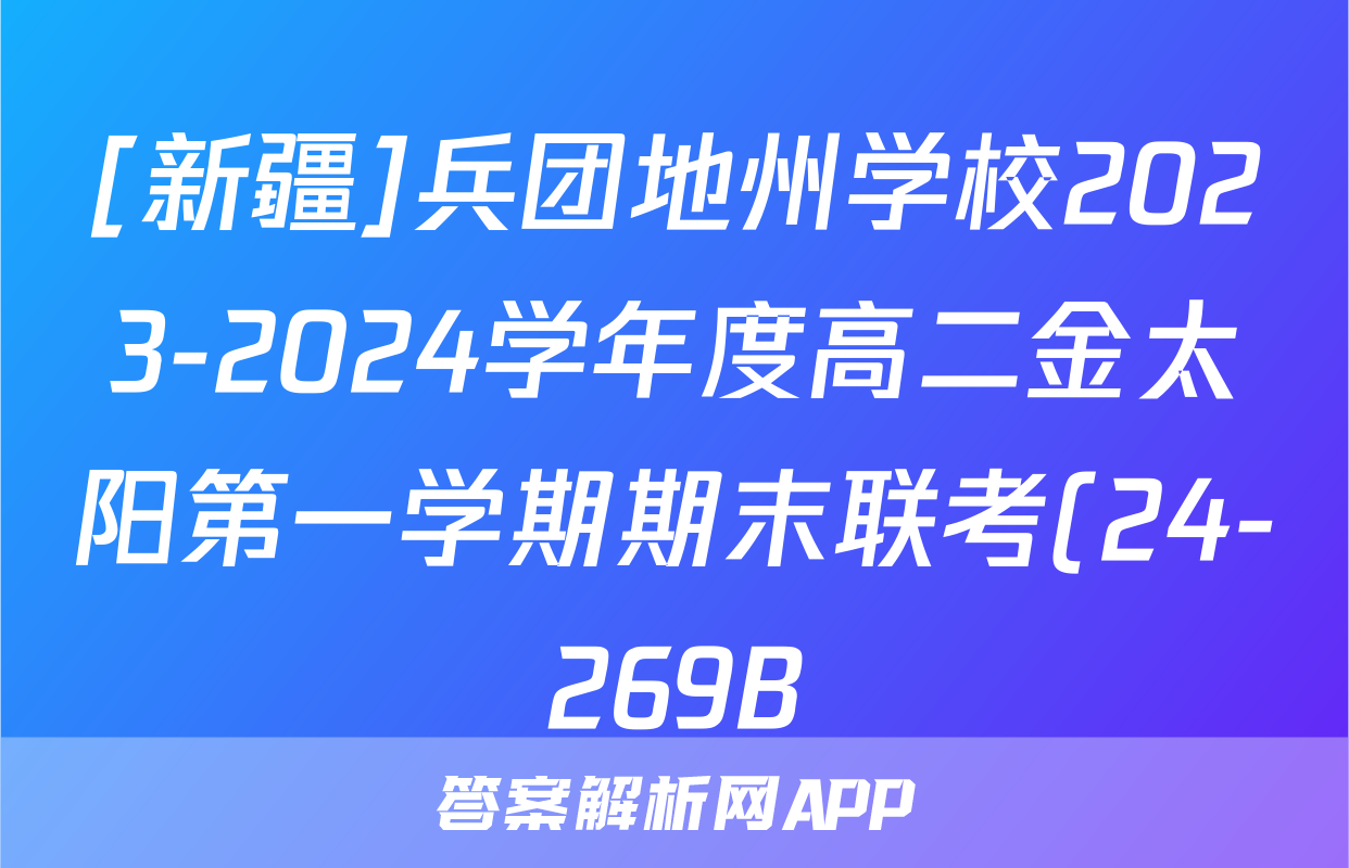 [新疆]兵团地州学校2023-2024学年度高二金太阳第一学期期末联考(24-269B)政治答案正在持续更新,目前2024届最新高考模拟示范卷答案网为大家整理了相关试题及答案,供大家查缺补漏,高效提升成绩。