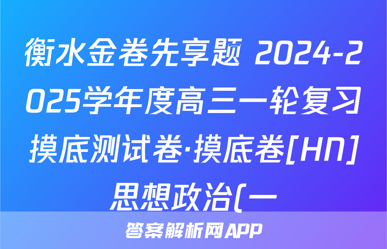 衡水金卷先享题 2024-2025学年度高三一轮复习摸底测试卷·摸底卷[HN]思想政治(一)1答案正在持续更新,目前2024届最新高考模拟示范卷答案网为大家整理了相关试题及答案,供大家查缺补漏,高效提升成绩。