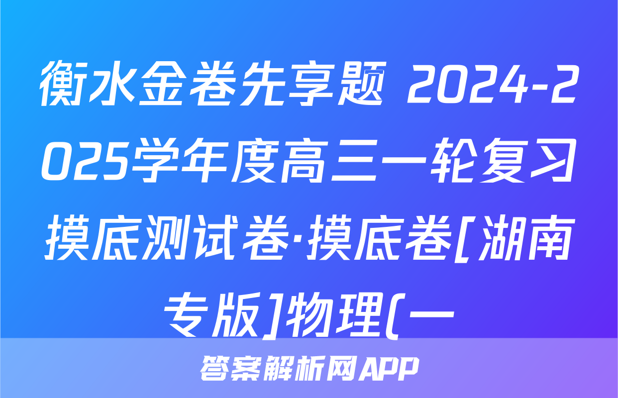 衡水金卷先享题 2024-2025学年度高三一轮复习摸底测试卷·摸底卷[湖南专版]物理(一)1试题正在持续更新,目前2024届最新高考模拟示范卷答案网为大家整理了相关试题及答案,供大家查缺补漏,高效提升成绩。