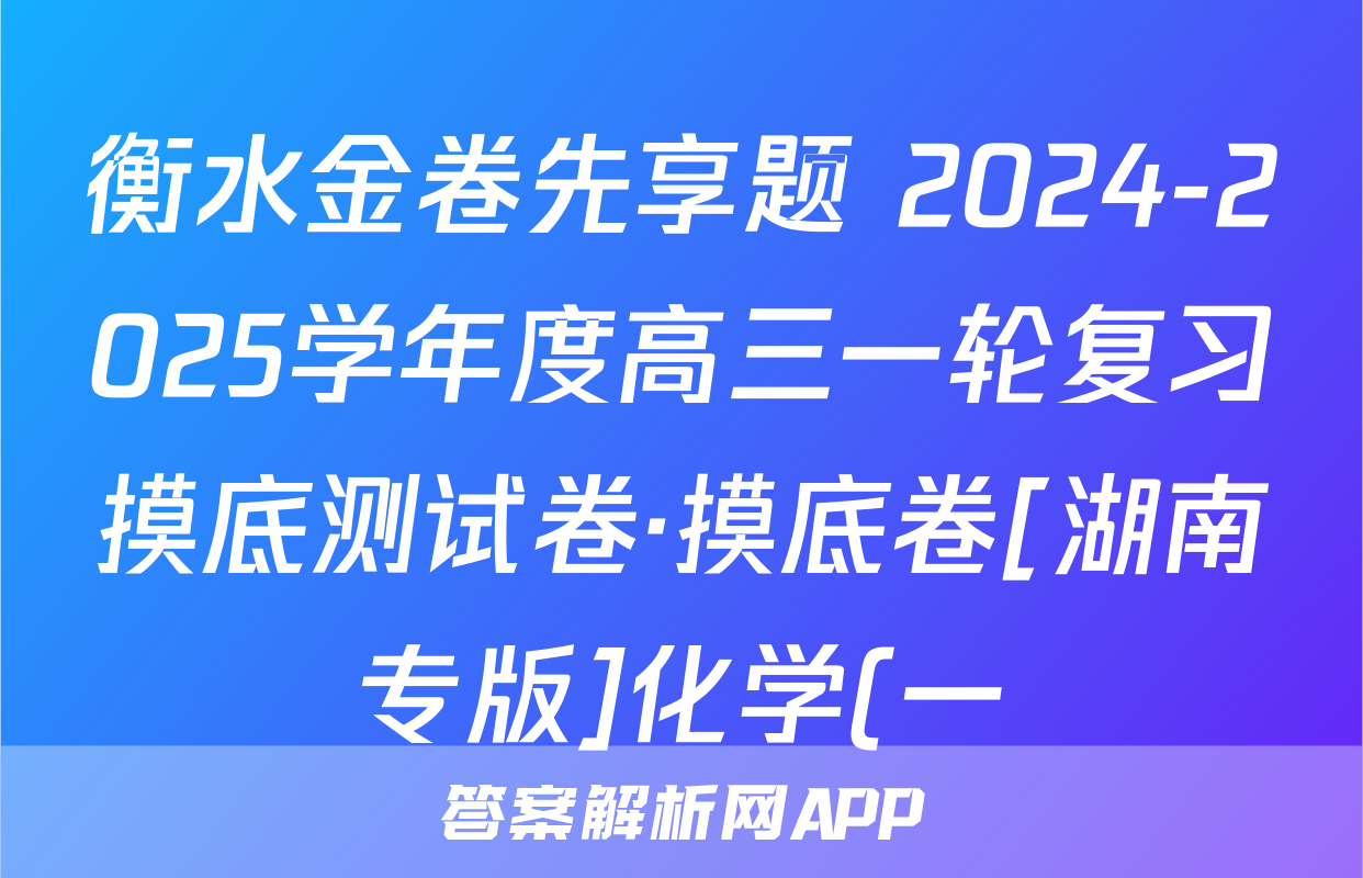 衡水金卷先享题 2024-2025学年度高三一轮复习摸底测试卷·摸底卷[湖南专版]化学(一)1试题正在持续更新,目前2024届最新高考模拟示范卷答案网为大家整理了相关试题及答案,供大家查缺补漏,高效提升成绩。