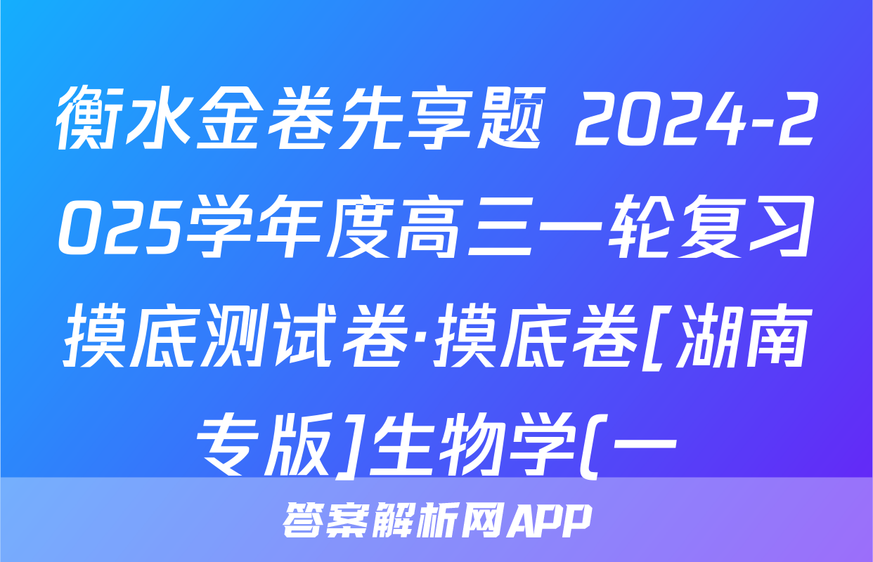 衡水金卷先享题 2024-2025学年度高三一轮复习摸底测试卷·摸底卷[湖南专版]生物学(一)1试题正在持续更新,目前2024届最新高考模拟示范卷答案网为大家整理了相关试题及答案,供大家查缺补漏,高效提升成绩。
