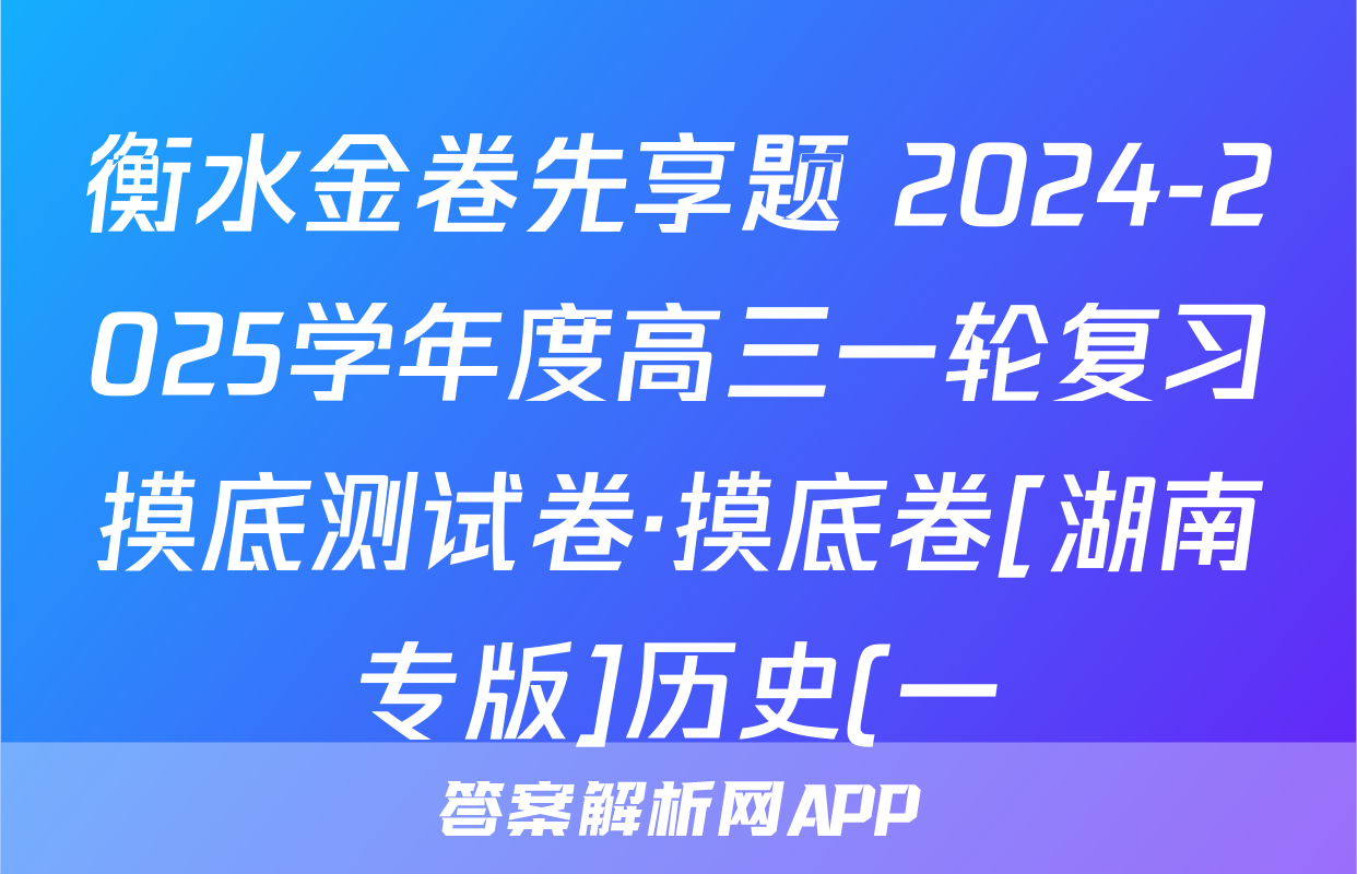 衡水金卷先享题 2024-2025学年度高三一轮复习摸底测试卷·摸底卷[湖南专版]历史(一)1试题正在持续更新,目前2024届最新高考模拟示范卷答案网为大家整理了相关试题及答案,供大家查缺补漏,高效提升成绩。