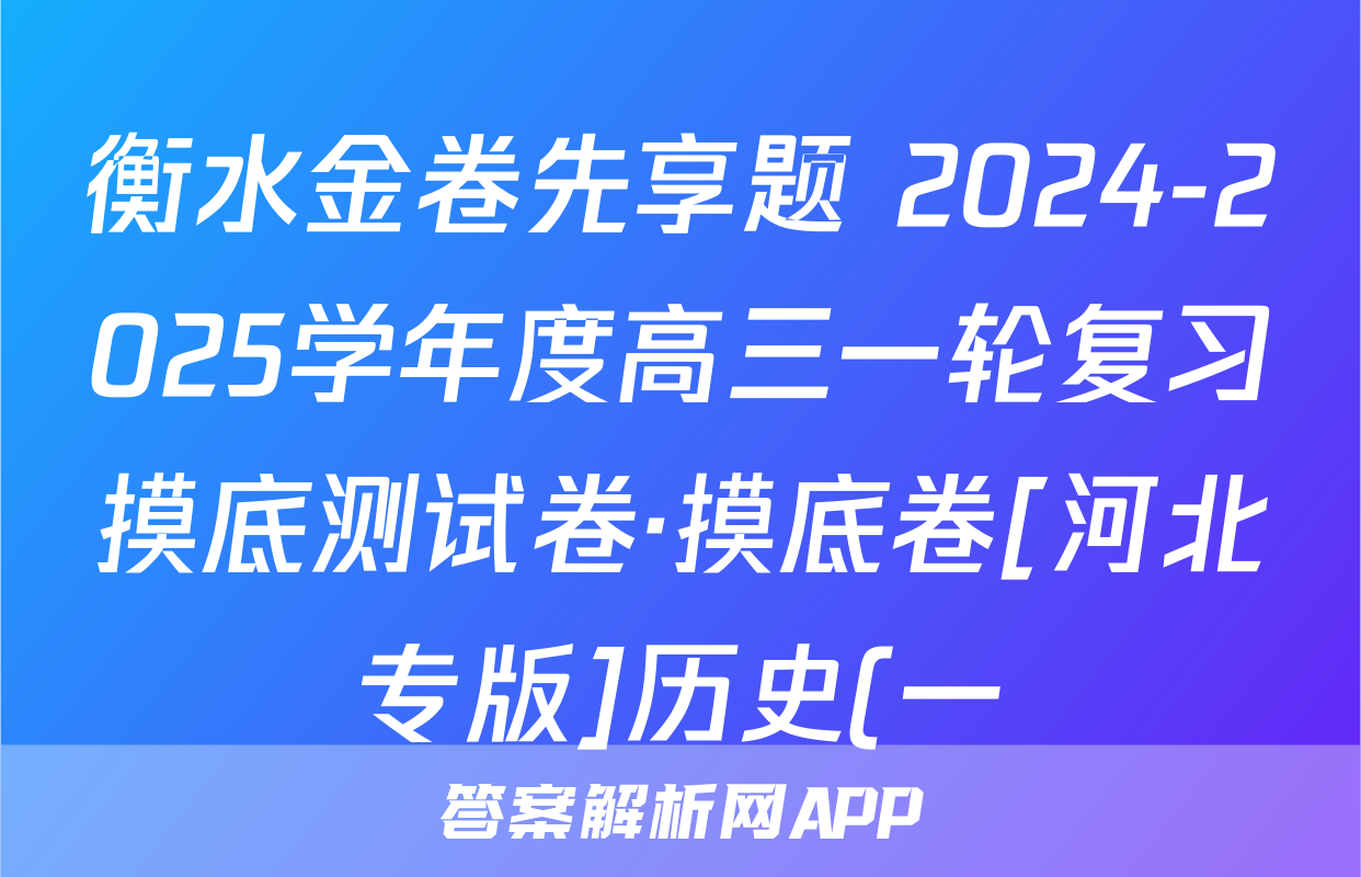 衡水金卷先享题 2024-2025学年度高三一轮复习摸底测试卷·摸底卷[河北专版]历史(一)1试题正在持续更新,目前2024届最新高考模拟示范卷答案网为大家整理了相关试题及答案,供大家查缺补漏,高效提升成绩。