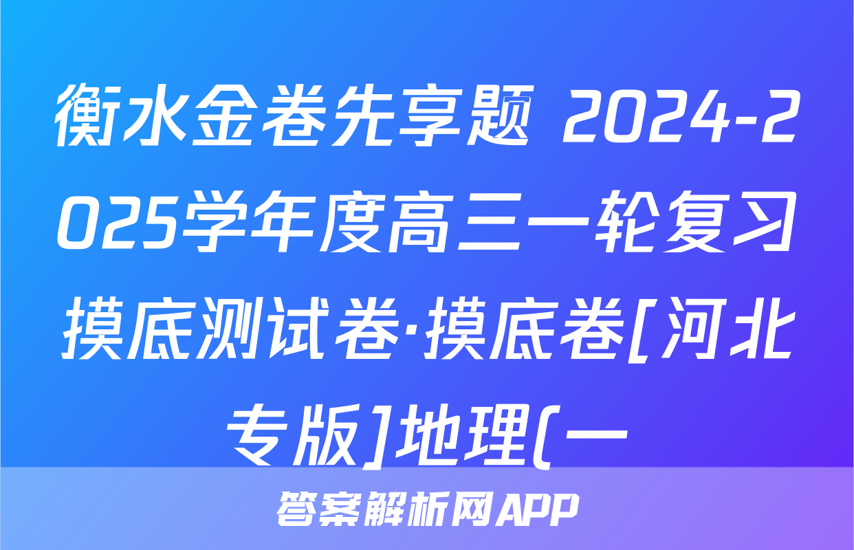 衡水金卷先享题 2024-2025学年度高三一轮复习摸底测试卷·摸底卷[河北专版]地理(一)1试题