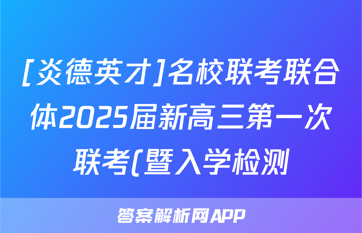 [炎德英才]名校联考联合体2025届新高三第一次联考(暨入学检测)历史试题正在持续更新,目前2024届最新高考模拟示范卷答案网为大家整理了相关试题及答案,供大家查缺补漏,高效提升成绩。