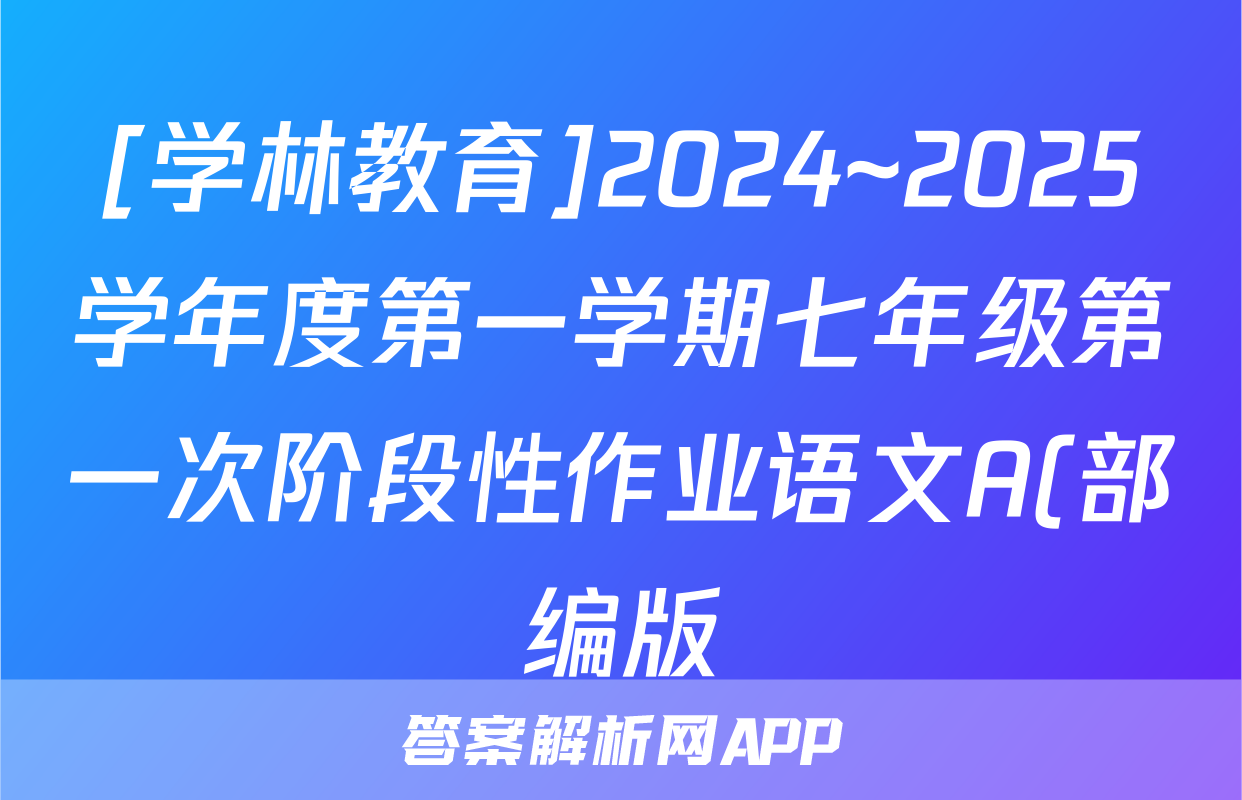 [学林教育]2024~2025学年度第一学期七年级第一次阶段性作业语文A(部编版)试题正在持续更新,目前2024届最新高考模拟示范卷答案网为大家整理了相关试题及答案,供大家查缺补漏,高效提升成绩。