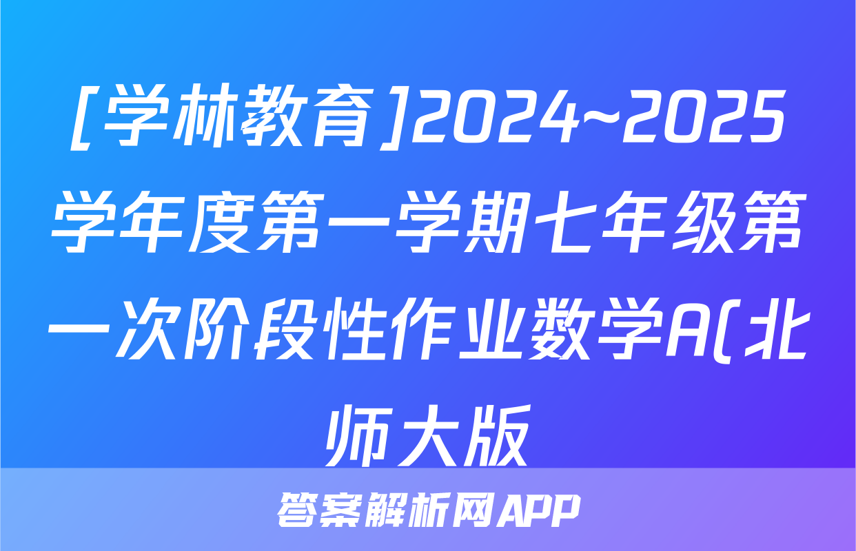 [学林教育]2024~2025学年度第一学期七年级第一次阶段性作业数学A(北师大版)试题正在持续更新,目前2024届最新高考模拟示范卷答案网为大家整理了相关试题及答案,供大家查缺补漏,高效提升成绩。