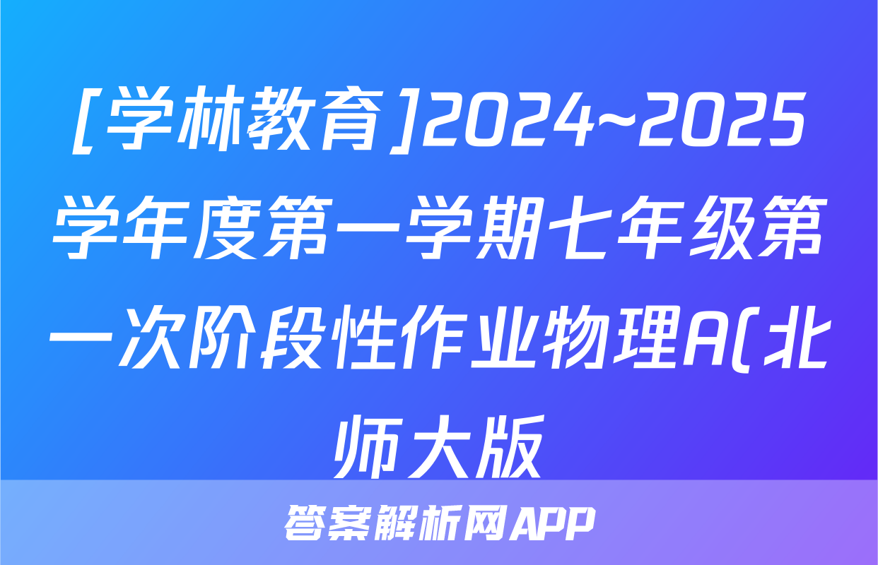 [学林教育]2024~2025学年度第一学期七年级第一次阶段性作业物理A(北师大版)试题正在持续更新,目前2024届最新高考模拟示范卷答案网为大家整理了相关试题及答案,供大家查缺补漏,高效提升成绩。