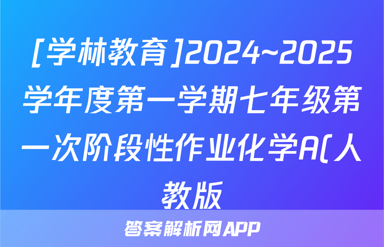 [学林教育]2024~2025学年度第一学期七年级第一次阶段性作业化学A(人教版)试题正在持续更新,目前2024届最新高考模拟示范卷答案网为大家整理了相关试题及答案,供大家查缺补漏,高效提升成绩。