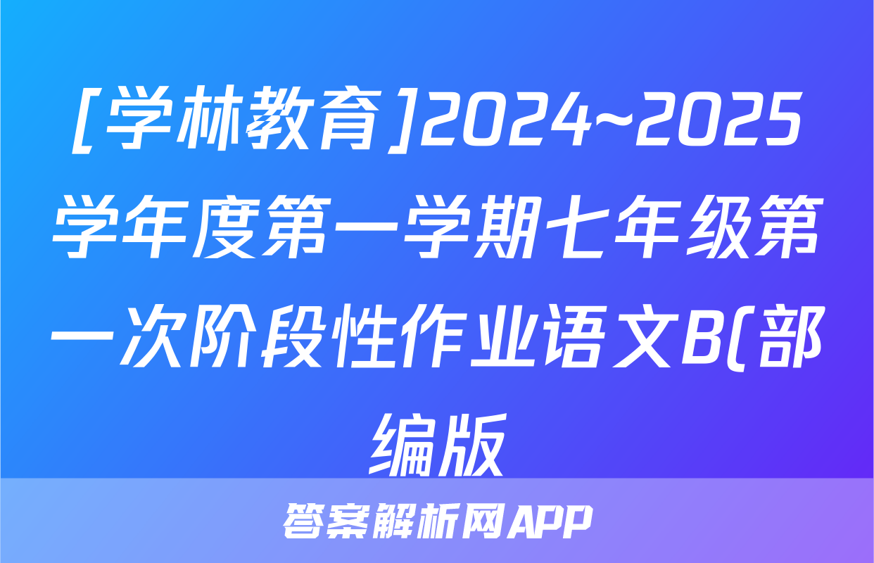 [学林教育]2024~2025学年度第一学期七年级第一次阶段性作业语文B(部编版)试题正在持续更新,目前2024届最新高考模拟示范卷答案网为大家整理了相关试题及答案,供大家查缺补漏,高效提升成绩。