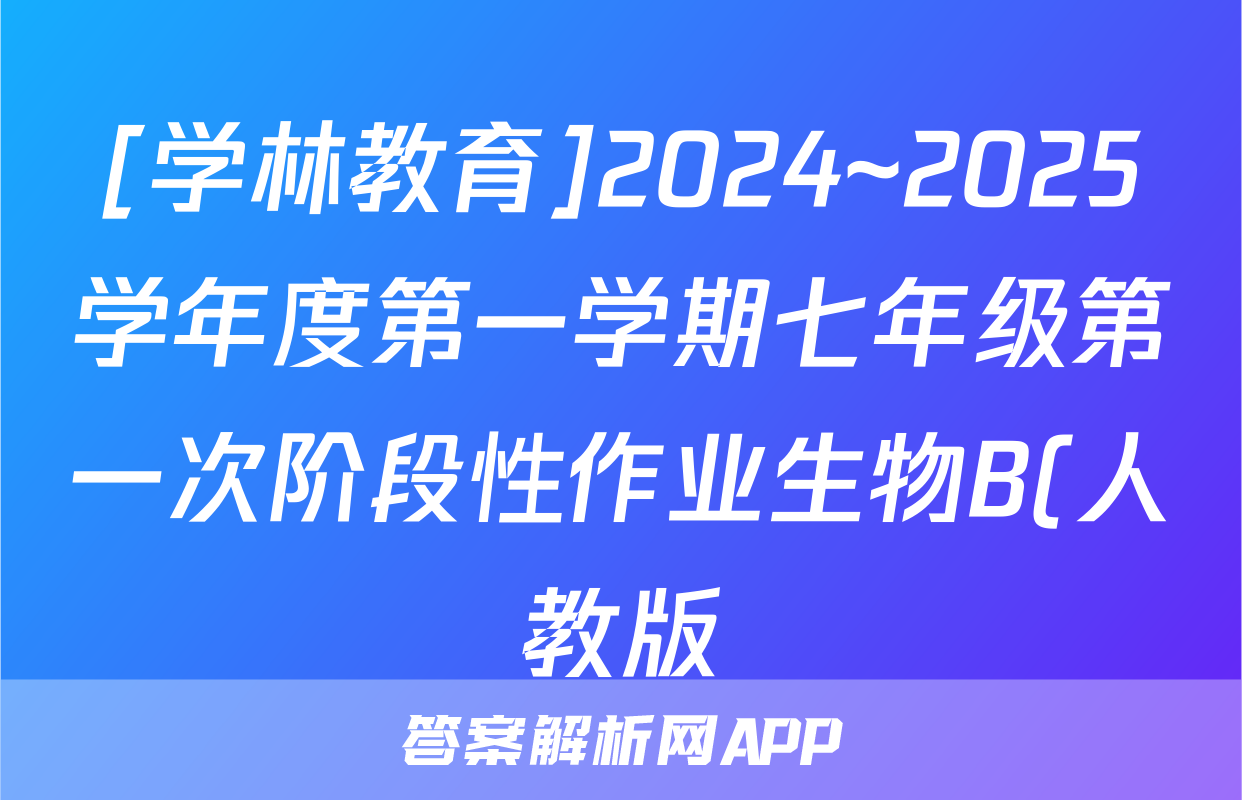 [学林教育]2024~2025学年度第一学期七年级第一次阶段性作业生物B(人教版)试题正在持续更新,目前2024届最新高考模拟示范卷答案网为大家整理了相关试题及答案,供大家查缺补漏,高效提升成绩。