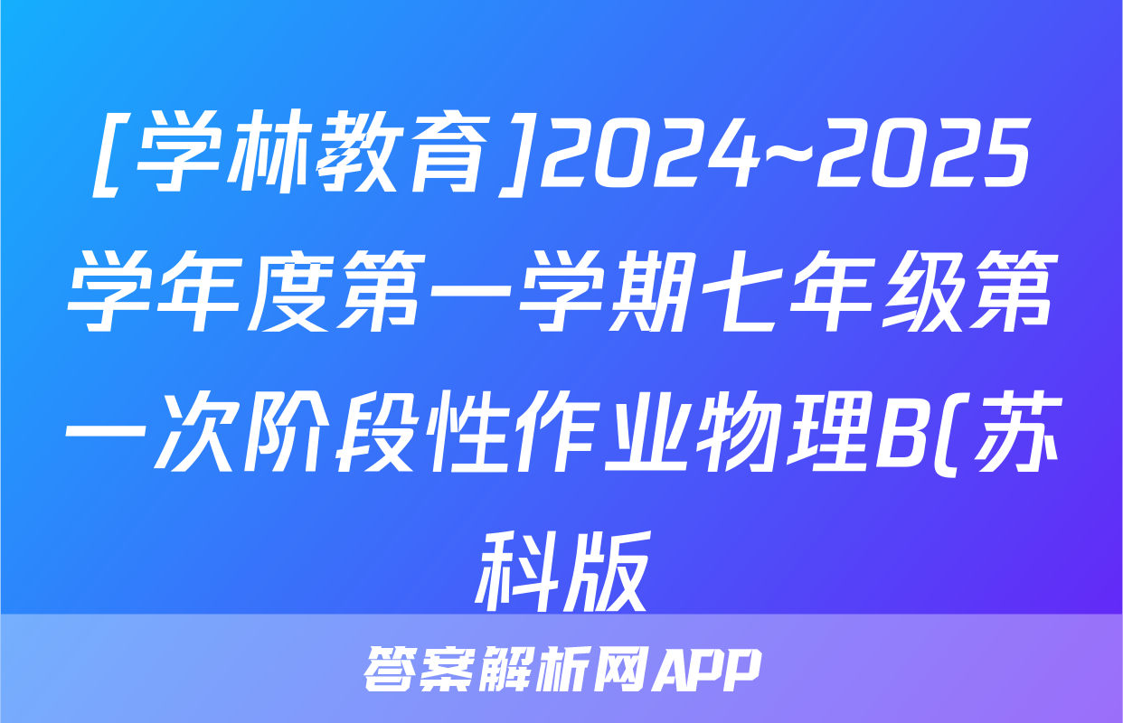[学林教育]2024~2025学年度第一学期七年级第一次阶段性作业物理B(苏科版)试题正在持续更新,目前2024届最新高考模拟示范卷答案网为大家整理了相关试题及答案,供大家查缺补漏,高效提升成绩。