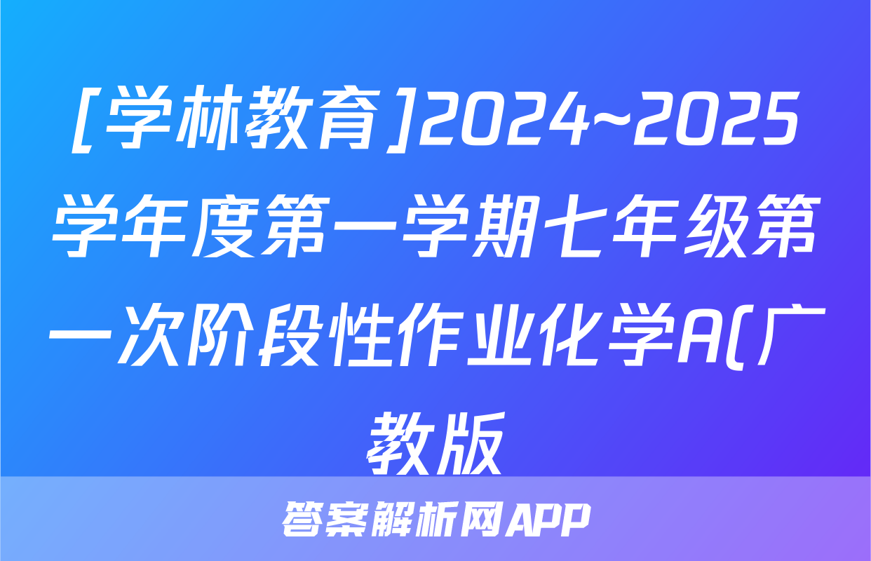 [学林教育]2024~2025学年度第一学期七年级第一次阶段性作业化学A(广教版)试题正在持续更新,目前2024届最新高考模拟示范卷答案网为大家整理了相关试题及答案,供大家查缺补漏,高效提升成绩。