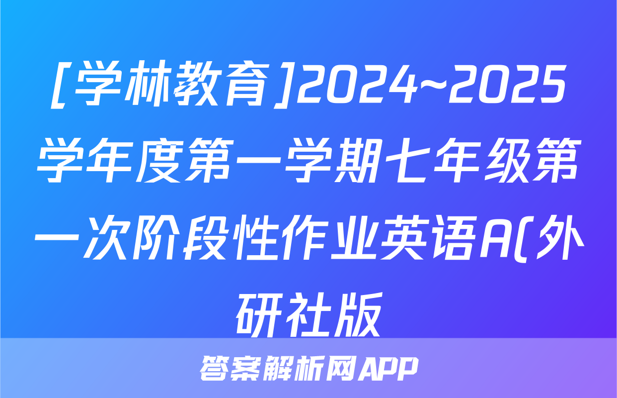 [学林教育]2024~2025学年度第一学期七年级第一次阶段性作业英语A(外研社版)答案