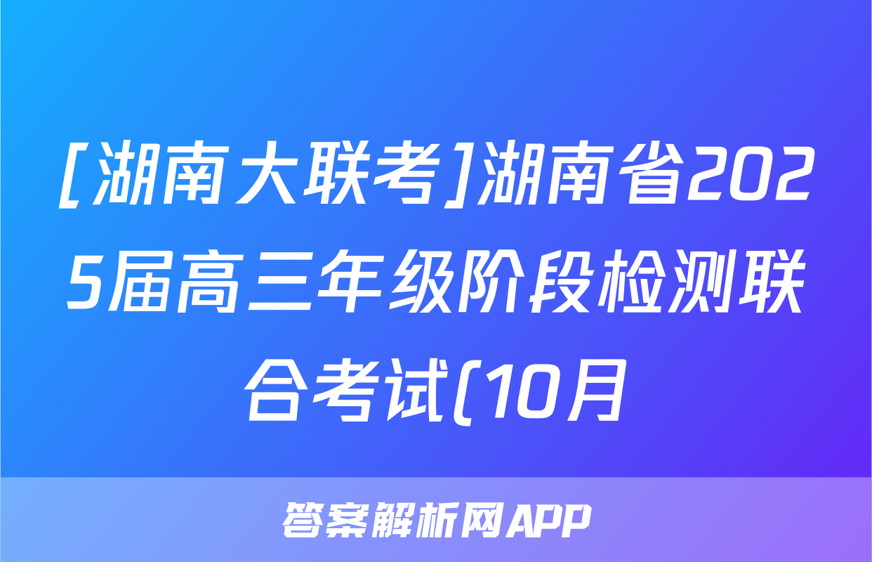 [湖南大联考]湖南省2025届高三年级阶段检测联合考试(10月)物理答案正在持续更新,目前2024届最新高考模拟示范卷答案网为大家整理了相关试题及答案,供大家查缺补漏,高效提升成绩。