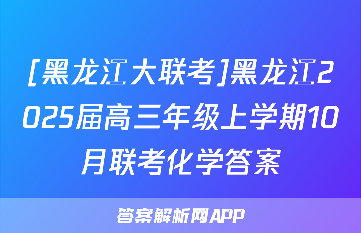 [黑龙江大联考]黑龙江2025届高三年级上学期10月联考化学答案正在持续更新,目前2024届最新高考模拟示范卷答案网为大家整理了相关试题及答案,供大家查缺补漏,高效提升成绩。