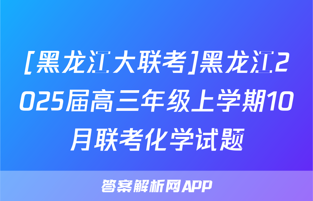 [黑龙江大联考]黑龙江2025届高三年级上学期10月联考化学试题